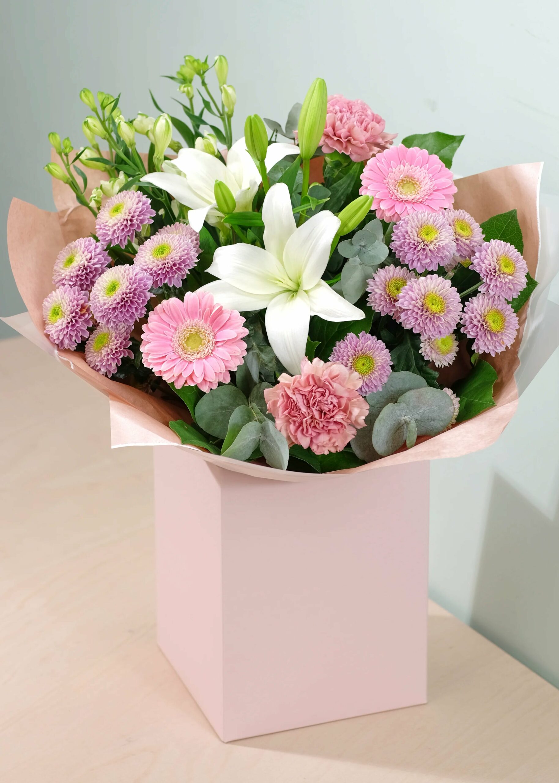 Un bouquet tout en douceur, aux nuances de rose et de blanc, symbole de tendresse et d’harmonie.